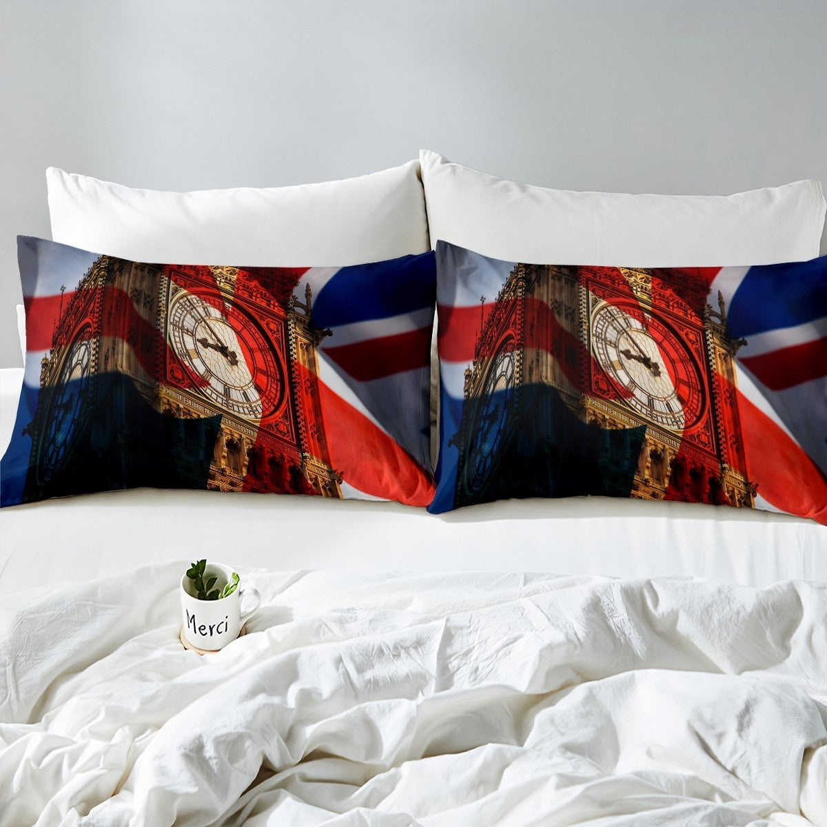 Big Ben Comforter Cover Set for Kids Boys Adults British Flag Duvet Cover London Cityscape Bedding Set World Famous Quilt Cover,Room Decor 2/3Pcs Bedding