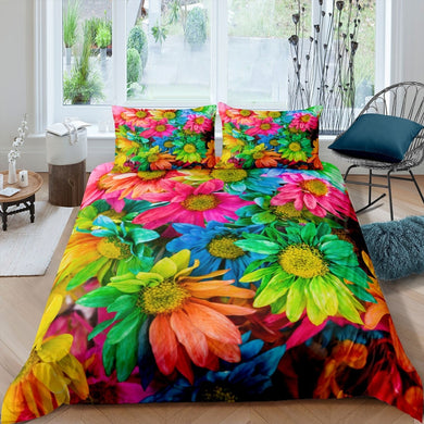 Colorful Sunflowers Comforter Cover Set Kids Girls Woman Floral Print Bedding Set Blossom Flowers Duvet Cover Botanical Pattern Bedspread Cover,Room Decor 2/3Pcs Bedding