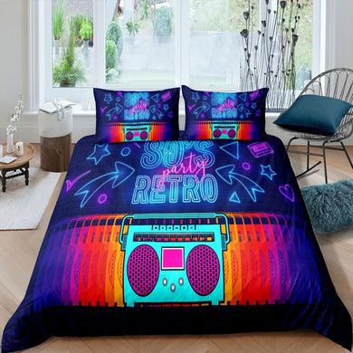 Retro Radio Duvet Cover Set Kids Boys Teens Rock Music Theme Comforter Cover Electronic Musical Instrument Bedding Set Hipster Quilt Cover,Room Decor 2/3Pcs Bedding