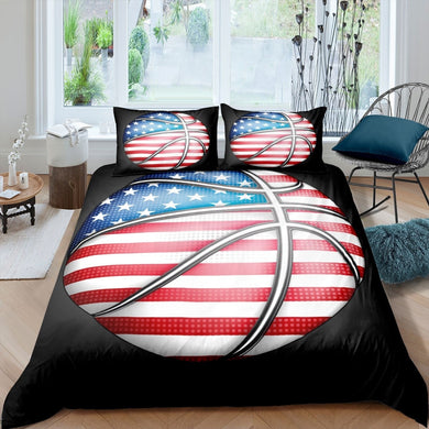Sports Basketball Comforter Cover Set for Boys Teens American Flag Duvet Cover Kids 3D Basketball Bedding Set Youth Sports Theme Quilt Cover,Room Decor 2/3Pcs Bedding