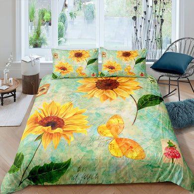 Sunflower Bedding Set Kids Woman Adults Vintage Floral Print Duvet Cover Watercolor Butterfly Comforter Cover Blossom Flowers Bedspread Cover,Room Decor 2/3Pcs Bedding