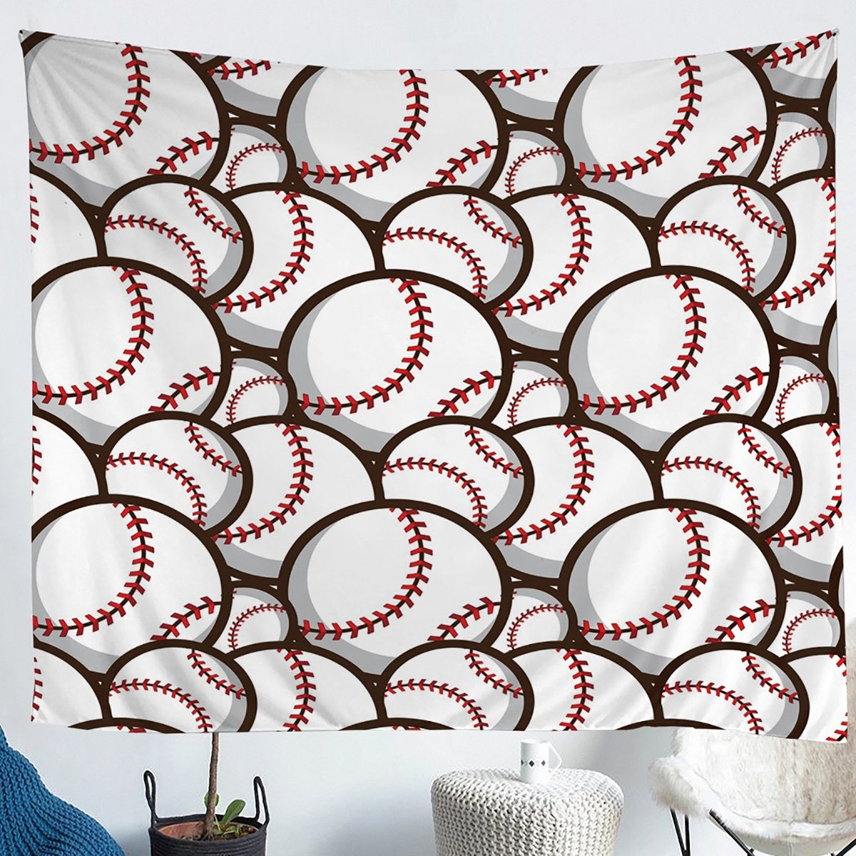 metsweet Baseball Tapestry for Kids Boys Children Sports Theme Wall Hanging 3D White Ball Pattern Wall Blanket Room Decor Baseball Games Wall Art  Beach Throw Tapestry