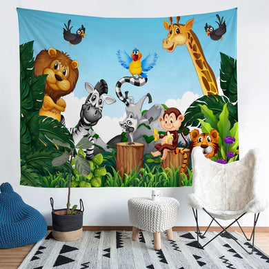 Giraffe Tapestry for Girls Boys Children Zebra Lion Monkey Wall Hanging Decorative Cute Zoo Animal Theme Wall Blanket Vartoon Wild Wildlifes Wall Art Picnic Sheet
