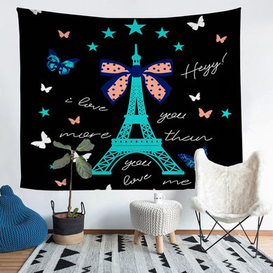 Girls Eiffel Tower Tapestry Girly Paris Cityscape Wall Hanging for Kids Adult Women Cute Butterflies Print Wall Blanket Colorful Butterfly Wall Art Room Decor Bedding Throw Blanket