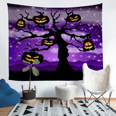 Halloween Theme Tapestry for Kids Boys Girls Horror Pumpkin Lantern Bedding Throw Blanket Purple Galaxy Tapestries Wall Hanging Halloween Night Wall Blanket,Bedding Collection
