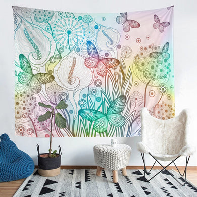 Girls Butterfly Tapestry Butterflies Print Wall Blanket For Kids Children Girly Dandelion Wall Hanging Colorful Floral Flowers Wall Art Bedroom Decor Sofa Cover