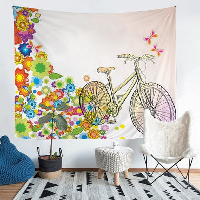 Girls Bicycle Tapestry Girly Floral Flowers Pattern Wall Hanging for Kids Children Women Chic Butterfly Wall Blanket Breathable Colorful Botanical Wall Art Room Decor Sofa Cover