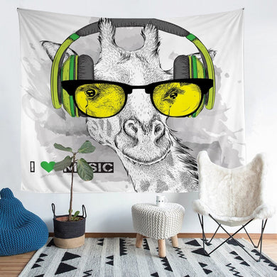 Giraffe Wall Blanket Zoo Animal Pattern Wall Hanging Rock Music Themed Tapestry For Kids Adults Hip Hop Musical Pattern Wall Art Ultra Soft Room Decor Picnic Sheet