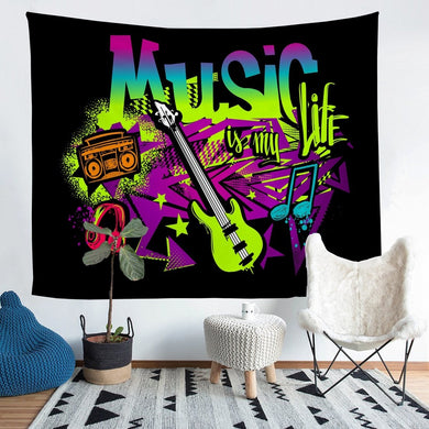 Hippie Graffiti Tapestry Kids Boys Teens Rock Music Theme Tapestries Wall Hanging Electric Guitar Radio Bedding Throw Blanket Music Notes Wall Blanket,Bedding Collection