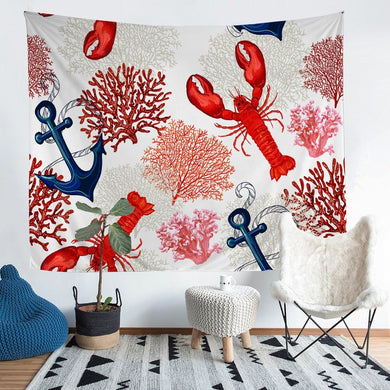 Ocean Nautical Bedding Throw Blanket for Kids Boys Girls Lobster Anchor Coral Tapestry Sea Animal Print Tapestries Wall Hanging Underwater World Wall Blanket,Bedding Collection