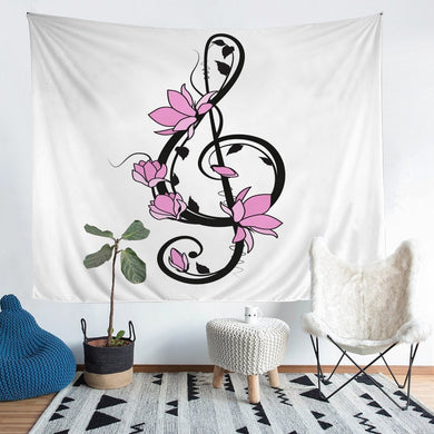 Luxury Girls Floral Print Tapestry Woman Blossom Flowers Bedding Throw Blanket Note Music Tapestries Wall Hanging Botanical Pattern Wall Blanket,Bedding Collection ,White