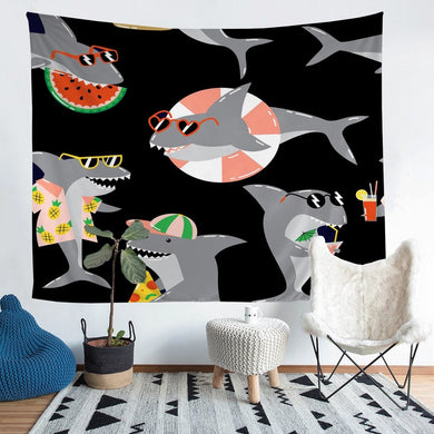 Kids Cartoon Shark Tapestries Wall Hanging Kids Boys Teens Cute Shark Print Tapestry Marine Life Ocean Theme Bedding Throw Blanket Summer Vacation Wall Blanket,Bedding Collection