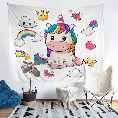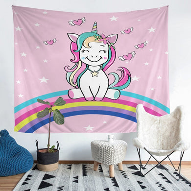 Kids Cartoon Unicorn Tapestries Wall Hanging Child Boys Girls Rainbow Unicorn Tapestry Cute Animal Pattern Bedding Throw Blanket Soft Children Wall Blanket,Bedding Collection