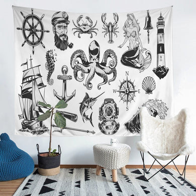 Nautical Theme Bedding Throw Blanket Kids Boys Teens Ocean Marine Life Tapestries Wall Hanging Octopus Compass Sailboat Tapestry Sea Adventure Wall Blanket,Bedding Collection