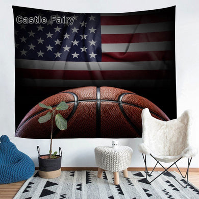 Castle Fairy 3D Basketball Tapestry Sports Theme Tapestries Wall Hanging American Flag Print Bedding Throw Blanket Basketball Competition Wall Blanket,Bedding Collection