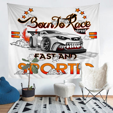 Boys Race Sports Car Tapestry Men Extreme Sports Theme Wall Hanging for Kids Adult Teens Racing Car Wall Blanket Personalized Skull Car Wall Art Room Decor Bedding Throw Blanket