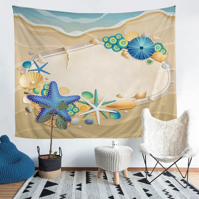 Beach Starfish Tapestry Ocean Marine Themed Wall Blanket For Kids Children Adults Couch Shell Wall Hanging Sea Creatures Wall Art Bedroom Decor Sofa Cover