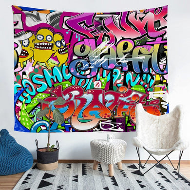 Boys Graffiti Pattern Wall Hanging Teens Hip Hop Style Tapestry Colorful Hippie Graffiti Style Wall Blanket for Kids Young Man Street Culture Theme Wall Art Room Decor Picnic Sheet
