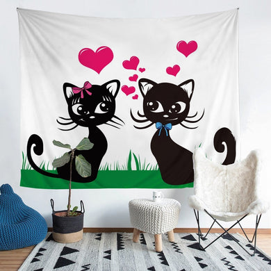 Black Cat Tapestry for Girls Boys Couple Cute Kitten Print Wall Hanging Cartoon Cats Pattern Wall Blanket Room Decor Pet Animal Theme Wall Art Beach Throw Tapestry