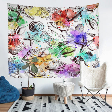 Beach Starfish Wall Blanket Ocean Marine Themed Wall Hanging Sea Conch Shell Creatures Tapestry For Kids Adults Girls Women Colorful Tie Dye Wall Art Room Decor Picnic Sheet