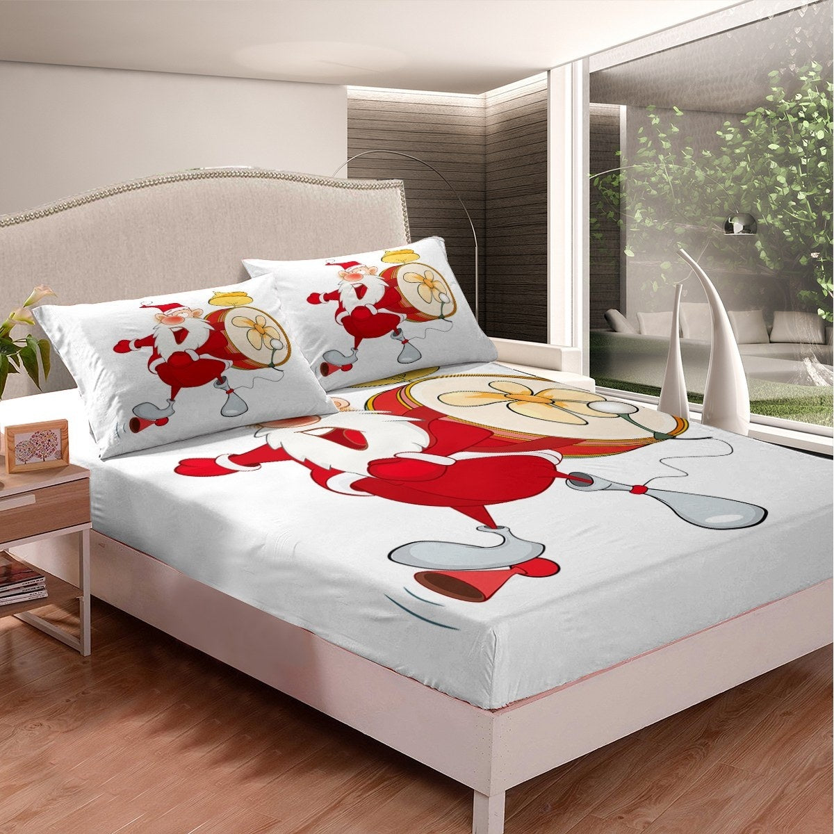Kids Fitted Sheet Cartoon Funny Pattern For Nursery Boys Girls Baby Little Child,Christmas Grandfather Bedding Set Festival Bed Sheet Set Girt,Decorative Bed Cover 2 Pcs Twin Size
